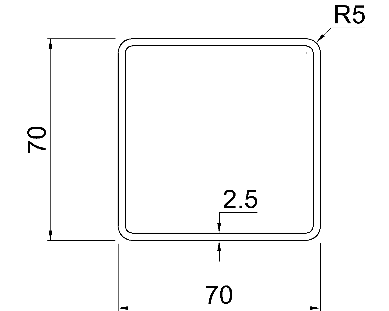 Inner Corner Radius : 2.5 mm